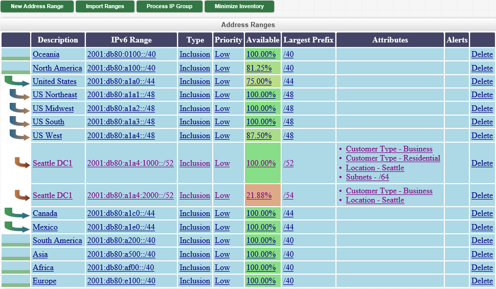 IPAM manages network number resources (e.g. IPv4, IPv6, VoIP DIDs) to document and monitor utilization while ensuring consistency. Number resources including IPs and subnets are automatically allocated from IPAM to inventory for service assignment as required to maintain stocking level.