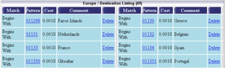 Rate grouping allows many rate tables to be virtually merged together for billing purposes. Overlapping rate table matches are automatically handled by selection of the most specific and relevant match.